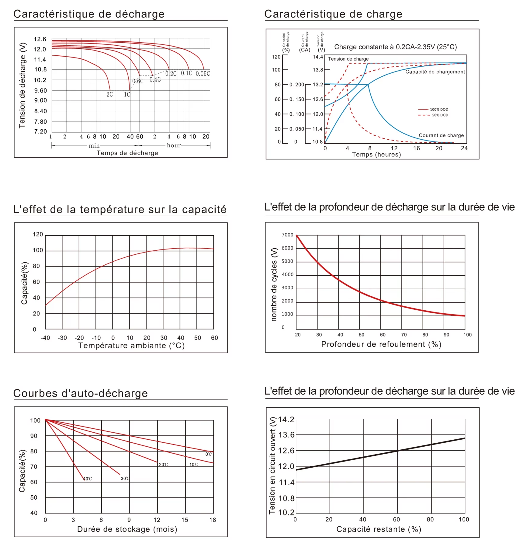 · Tension en usage cyclique : 13,5 – 13,8 V (recommandée 13,62 V)