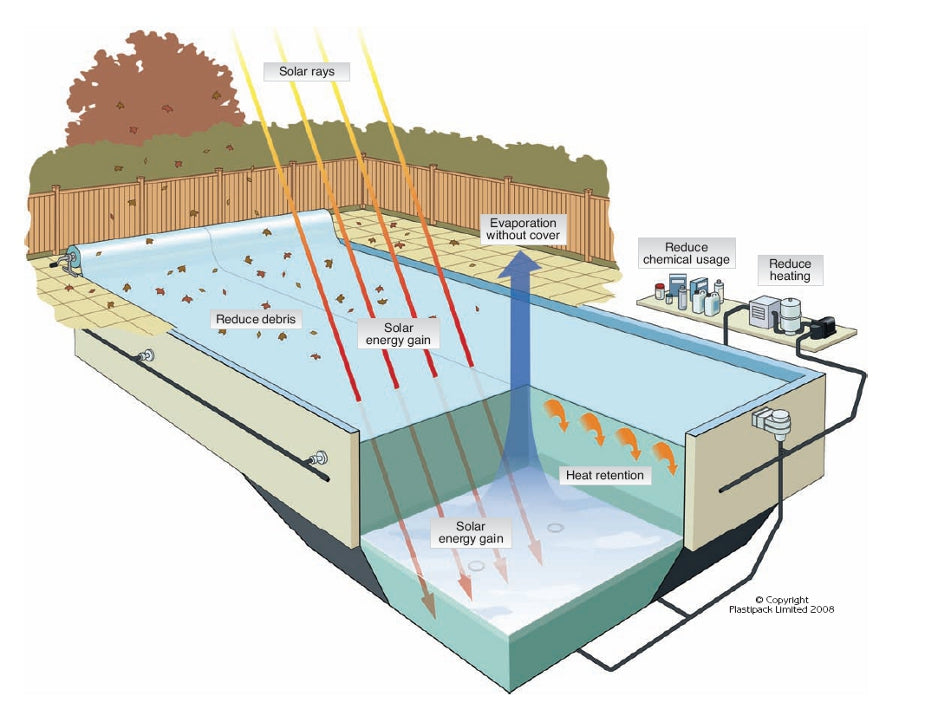 - Les pertes de chaleur sont évitées dans les piscines chauffées avec l'économie d'énergie qui en résulte.