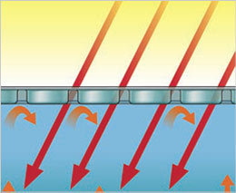 - Dans les piscines non chauffées, la température de l'eau peut être augmentée de 6 à 12º à l'aide d'une couverture solaire.