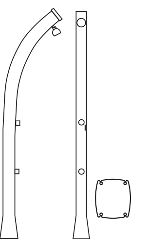 Un simple raccord à une arrivée d’eau suffit pour alimenter cette douche solaire. Sa base évasée assure la stabilité et l’installation facile de la Happy 4x4.