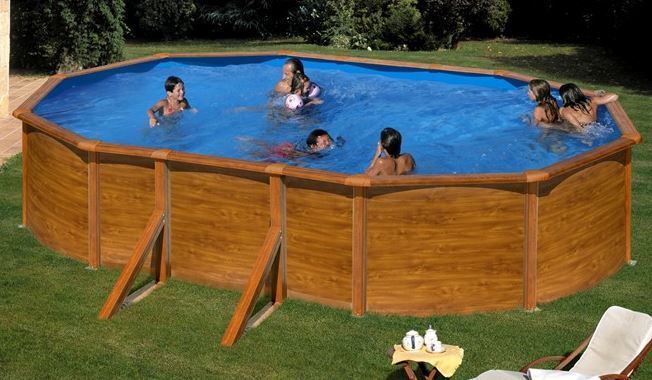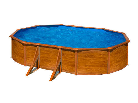 Piscine amovible Pacific de forme ovale de 500x300x120 cm Gre avec aspect bois en acier de haute qualité et durabilité.
