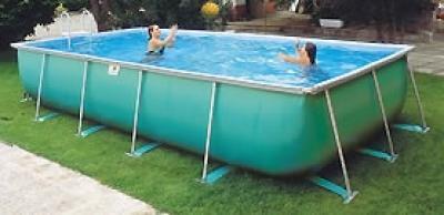 Piscine rectangulaire surélevée de 8,50 x 3,00 x 1,20 mètres.